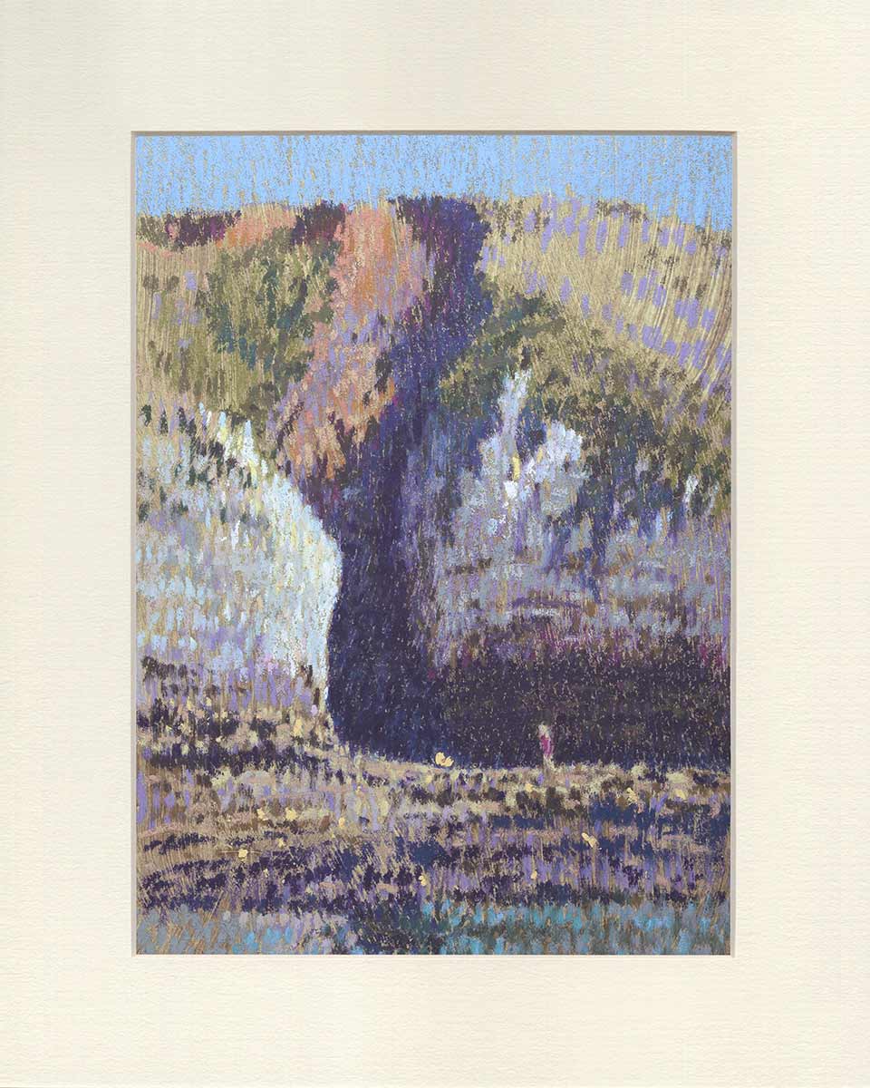 An original drawing of a cave entrance at Flamborough North landing on the Yorkshire coast. Made with oil pastel on primed acid-free paper. The image size is 7.5 x 5.5 ins and is window mounted to fit a standard size 10 x 8 frame (frame not included).